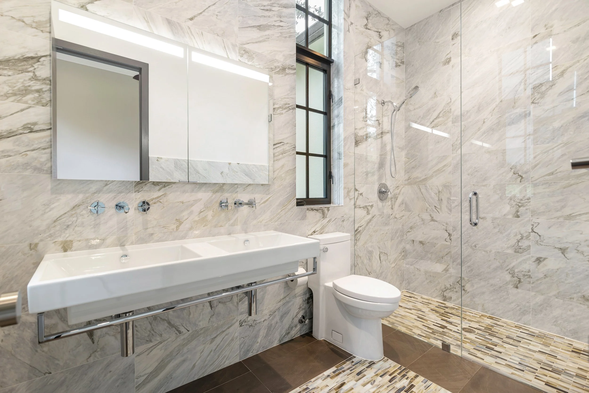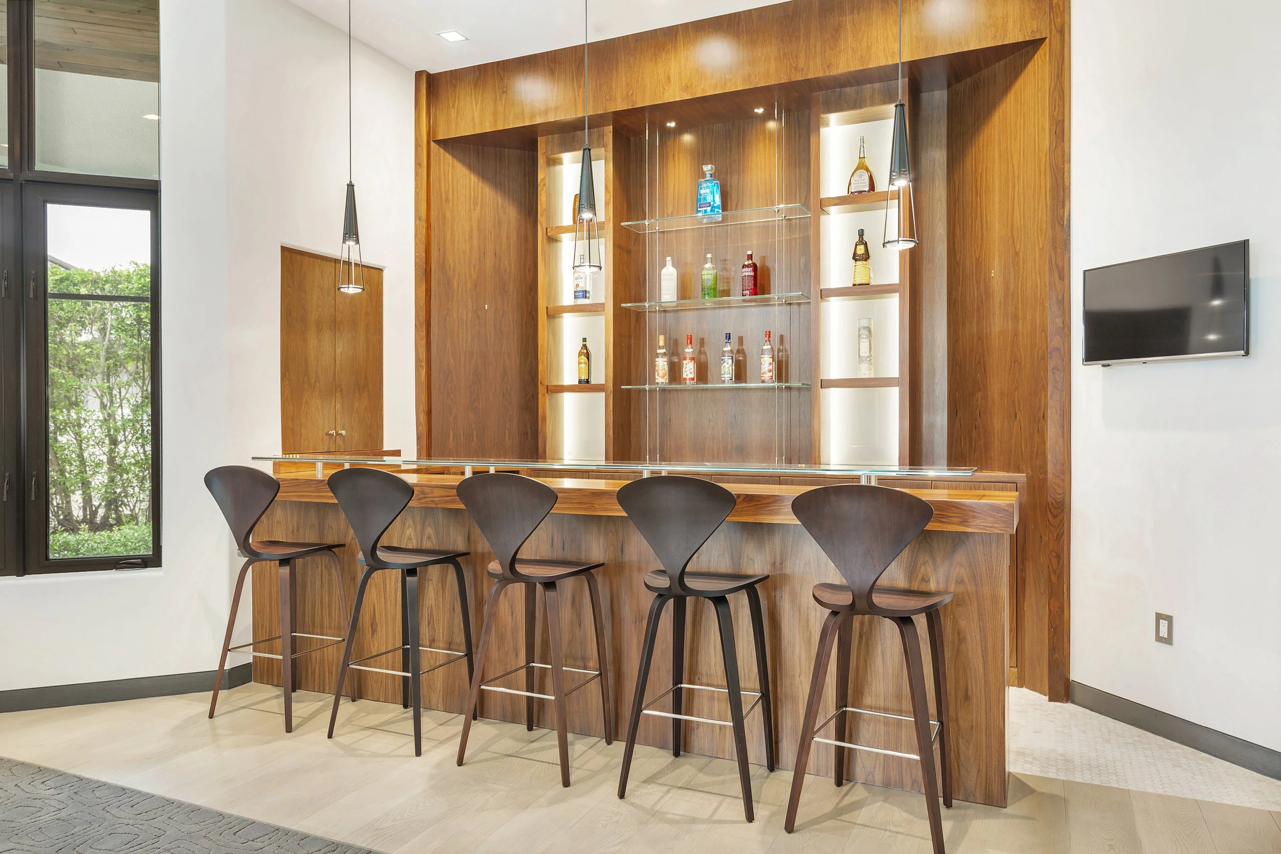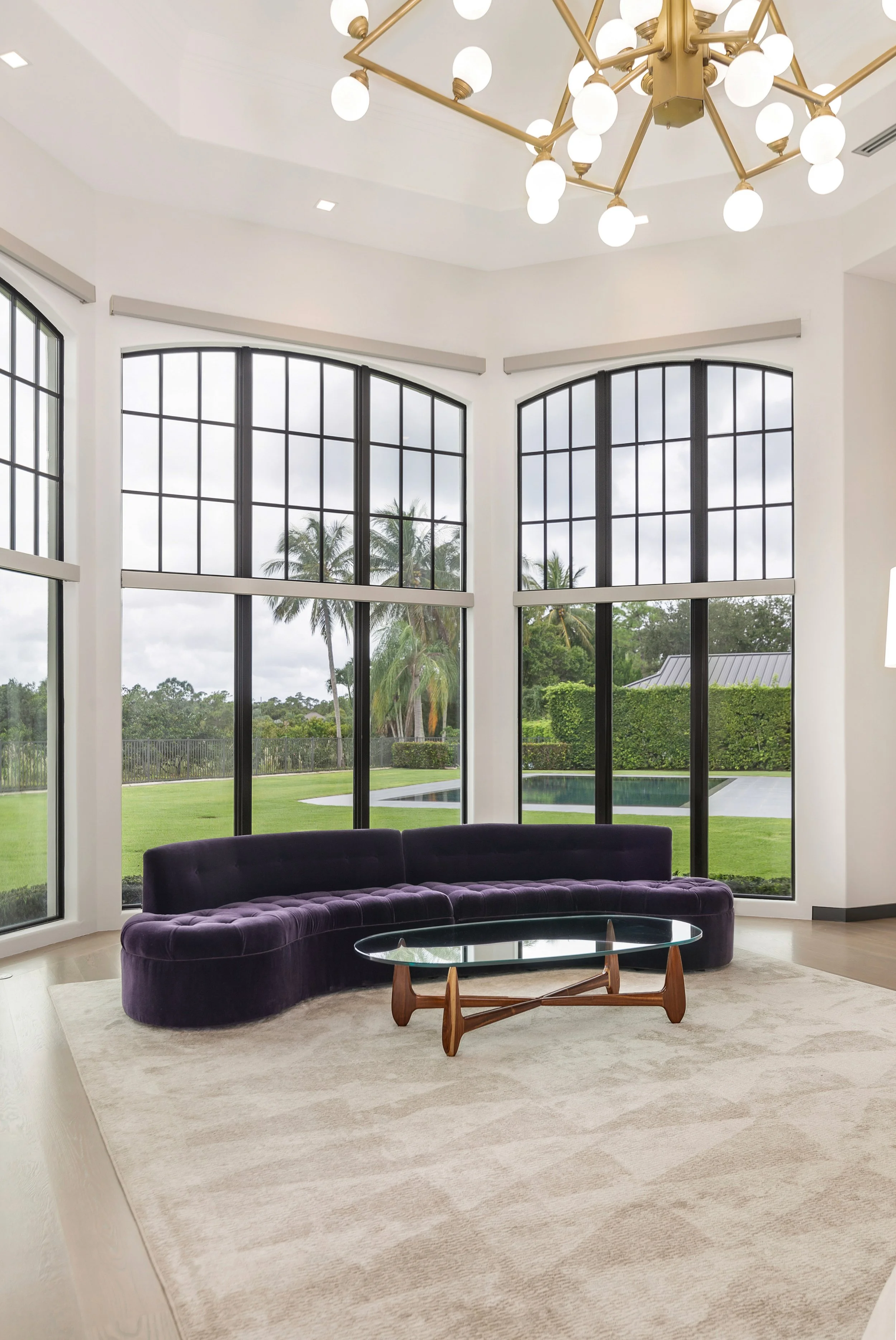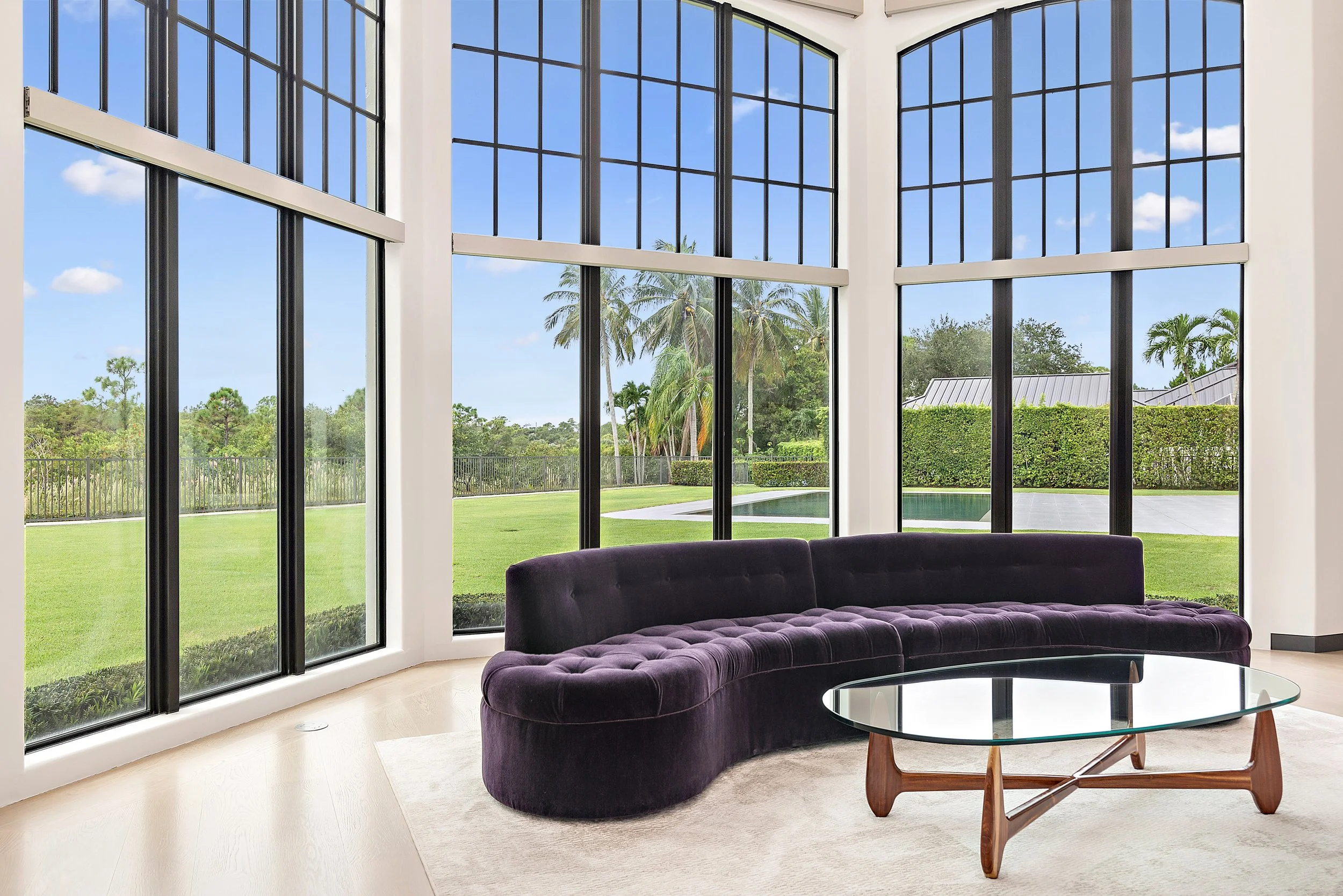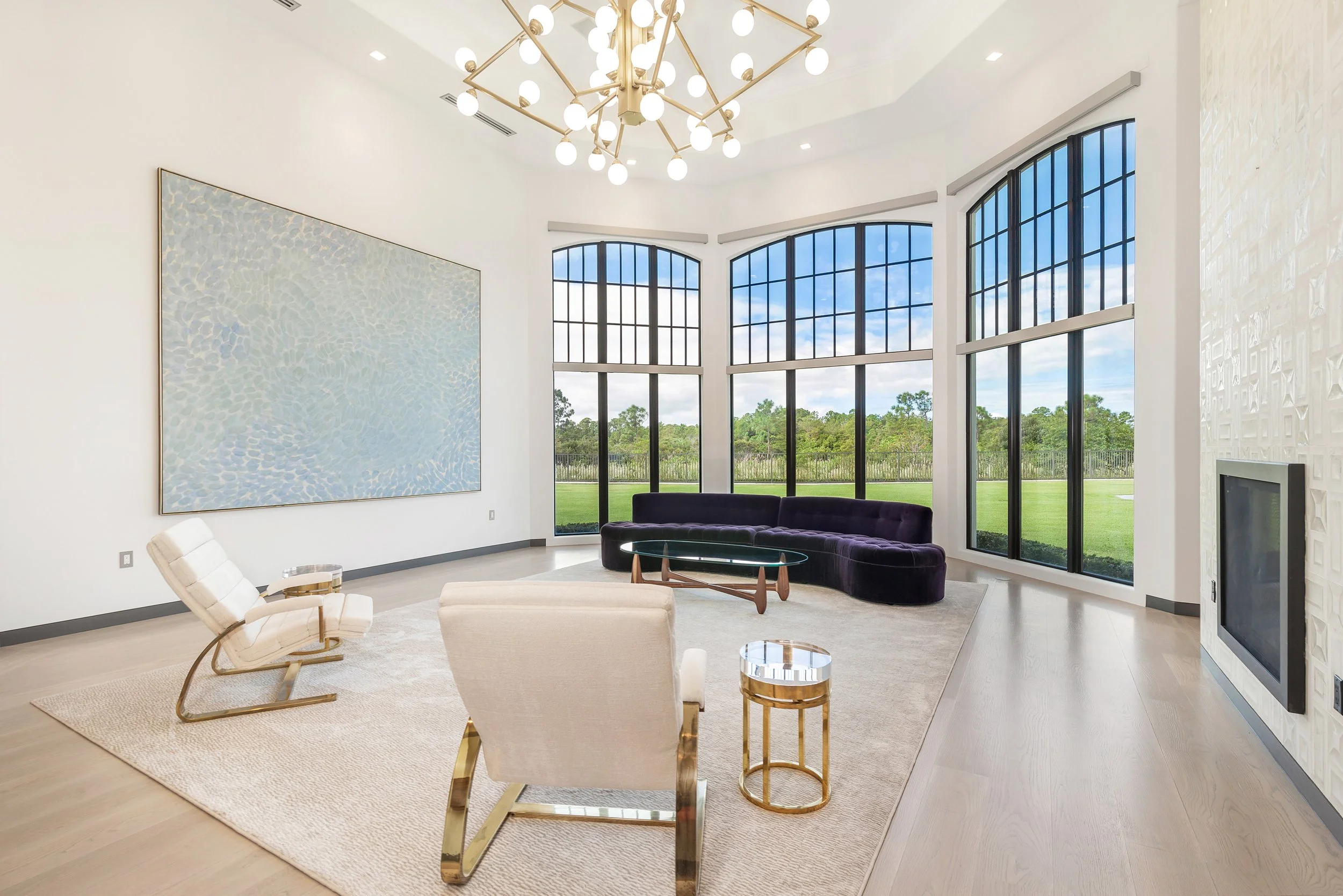 Spanning over 9,200 square feet, the residence embodies refined living with natural stone, custom millwork, and expansive walls of glass. The open layout connects formal and informal spaces, ideal for intimate family moments or grand-scale entertaining.