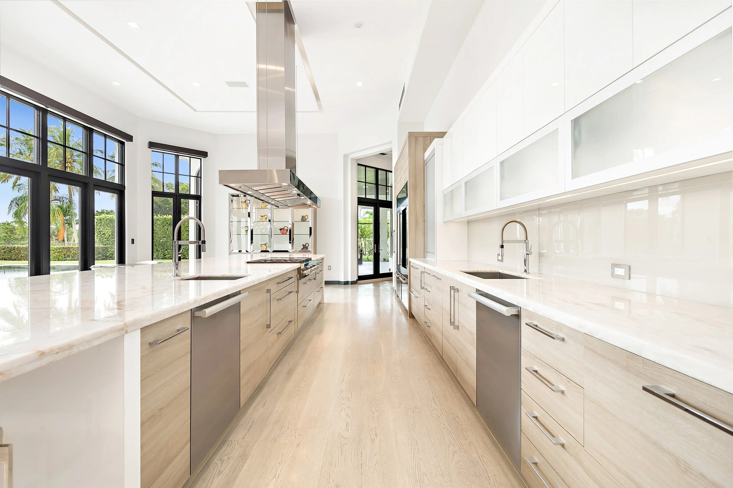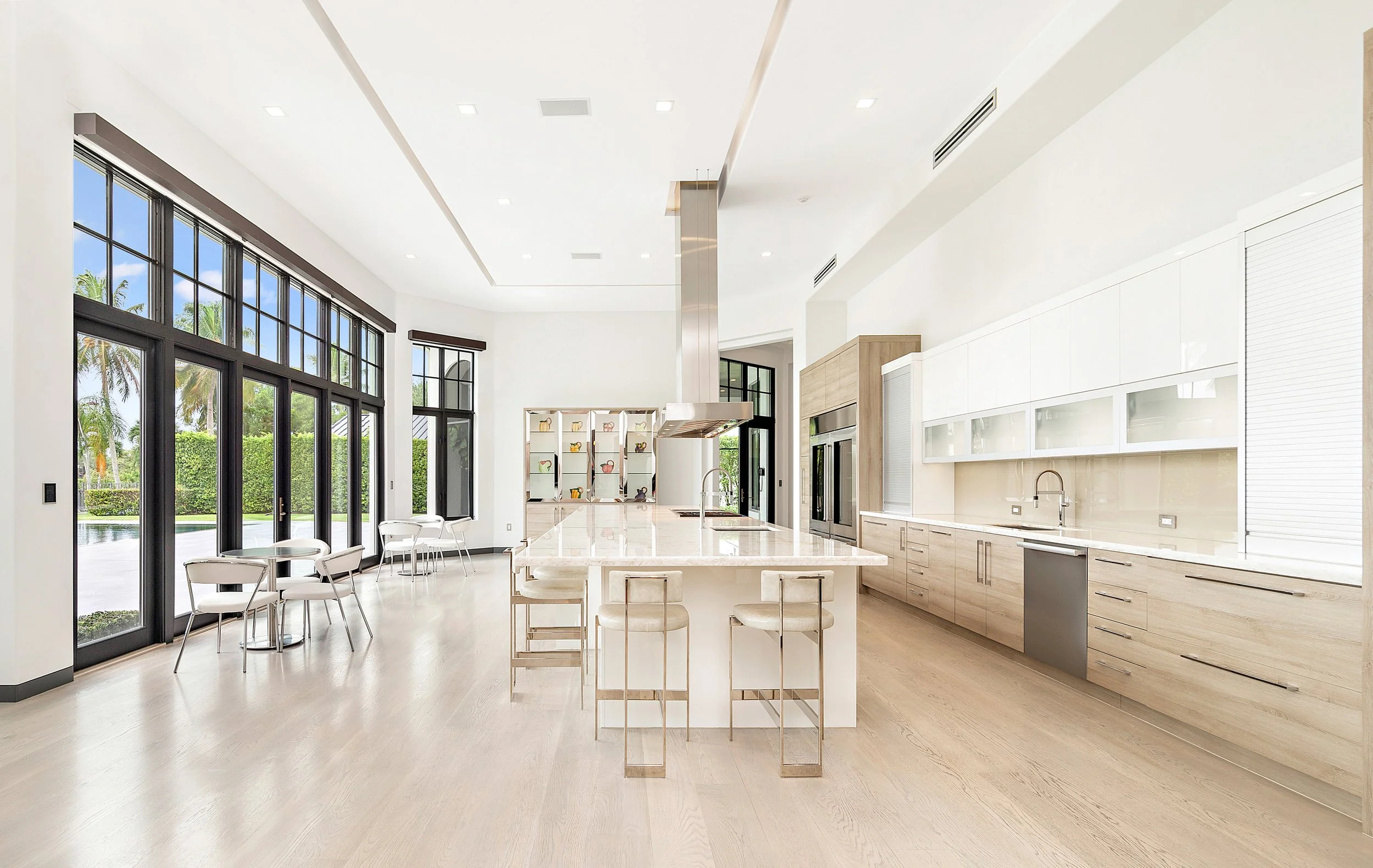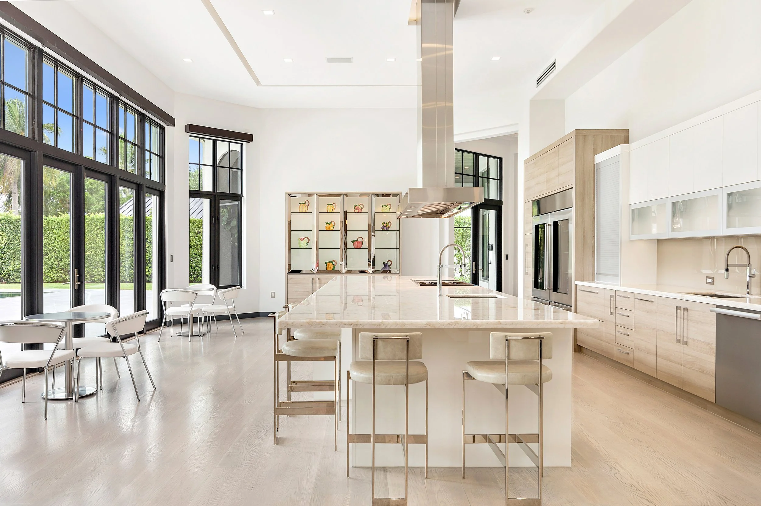 At the heart of the home is a 1,200-square-foot chef’s kitchen, complete with top-tier appliances and generous prep areas. It serves as both a culinary workspace and a central gathering hub, effortlessly linking to the surrounding living areas.